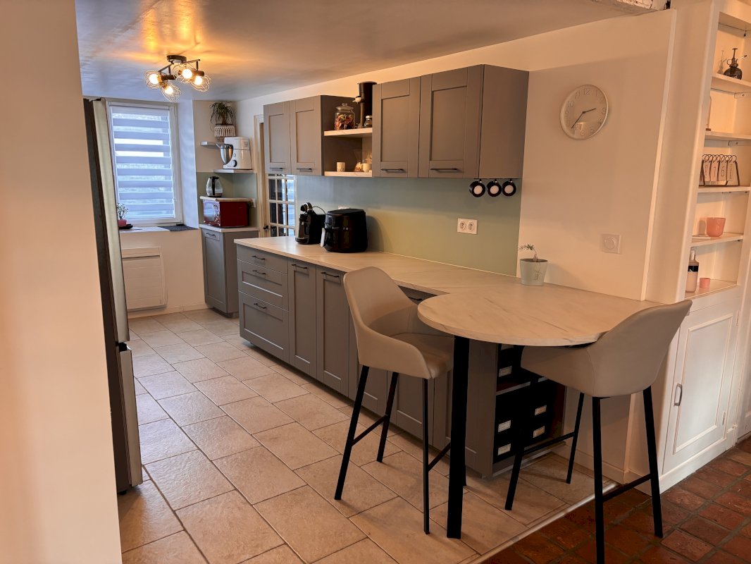 D'une surface habitable d'environ 115 m², elle se compose au rez-de-chaussé d'un agréable espace de vie avec salon ouvert sur une cuisine équipée (environ 18 m²), offrant un cadre convivial et fonctionnel.