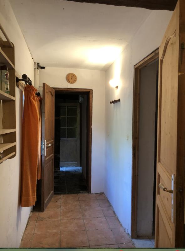 Maison du 15è siècle en pierre, 3 façades, de 100m² habitables, à finir de rénover, comprenant au rdc : séjour avec coin cuisine, cheminée à tuber, poutres et carrelage, corridor, wc avec lave-main séparé, petit salon, salle de bain (baignoire, douche, lavabo), buanderie avec chauffe-eau électrique. A l'étage, 2 chambres en enfilade mansardées avec coin rangement, WC, lavabo. Grenier 36m² accessible par l'extérieur, avec charpente authentique d'avant le 16è siècle en parfait état, permettant d'aménager une ou 2 chambres supplémentaires. Petit toit, piscine à rénover, coin BBQ ombragé, le tout sur un terrain de 2150 m² arboré - fruitiers. Maison mitoyenne côté pignon nord.