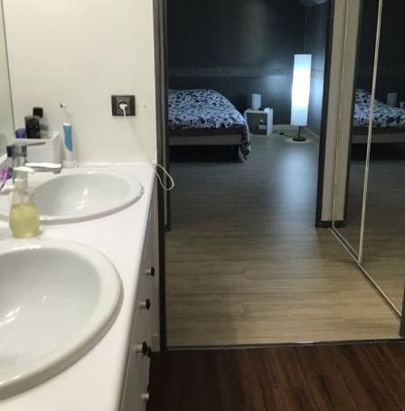 - une salle de bain meublée avec wc,