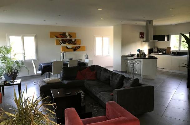 - une belle entrée qui dessert une cuisine ouverte sur une grande pièce de vie d'environ 60 m²,