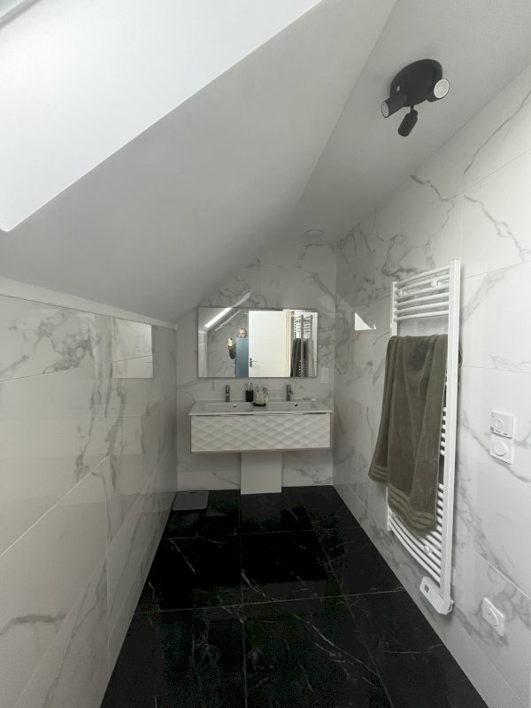 - Une mezzanine de rangement au-dessus du garage d’environ 15 m².