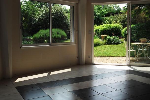 - salon, 33 m² environ, dans une extension récente (structure exceptionnelle) avec grandes baies vitrées donnant sur le jardin.